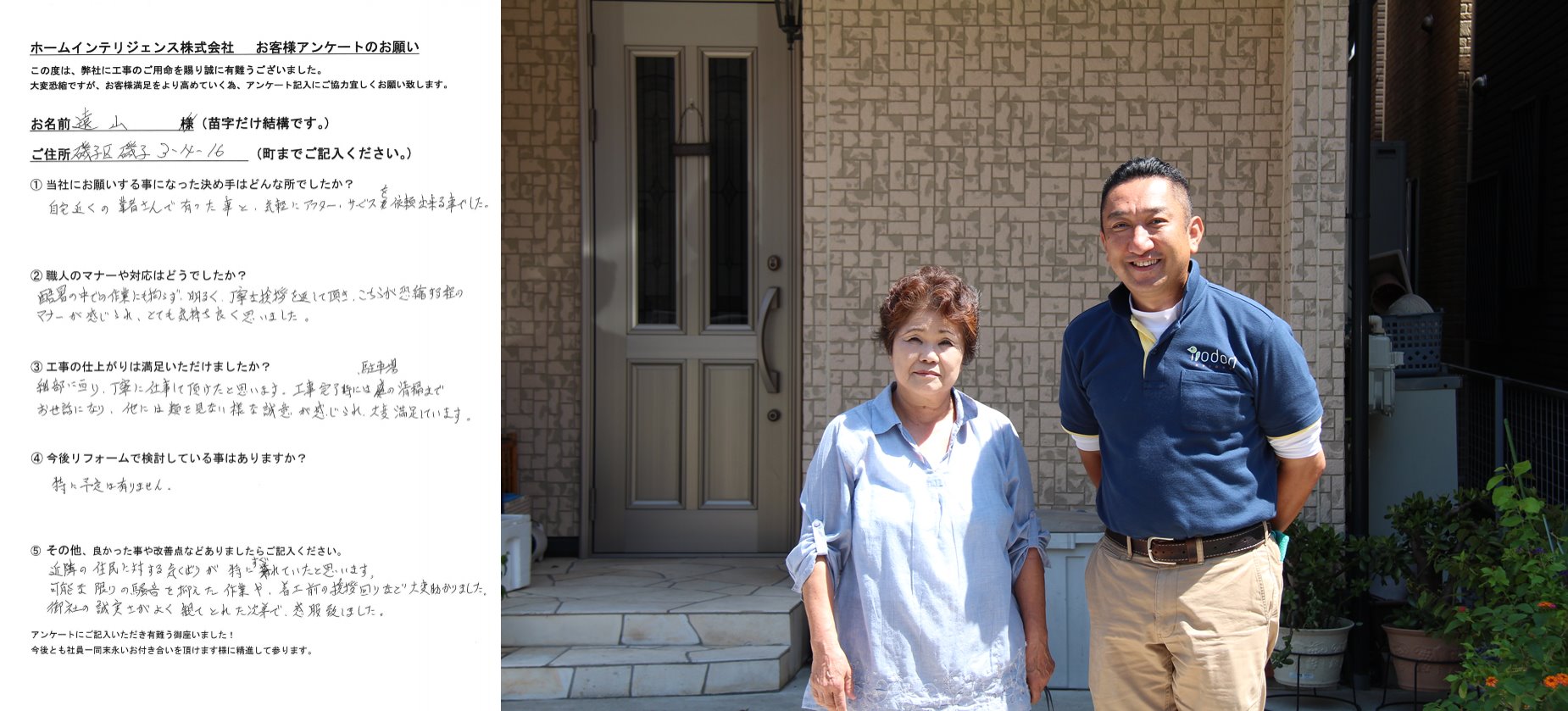 お客様の声:磯子区磯子 遠山様