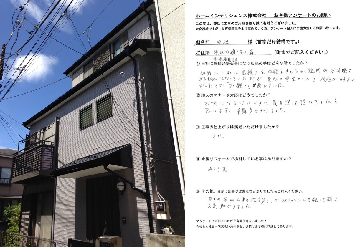 お客様の声:磯子区森 田辺様