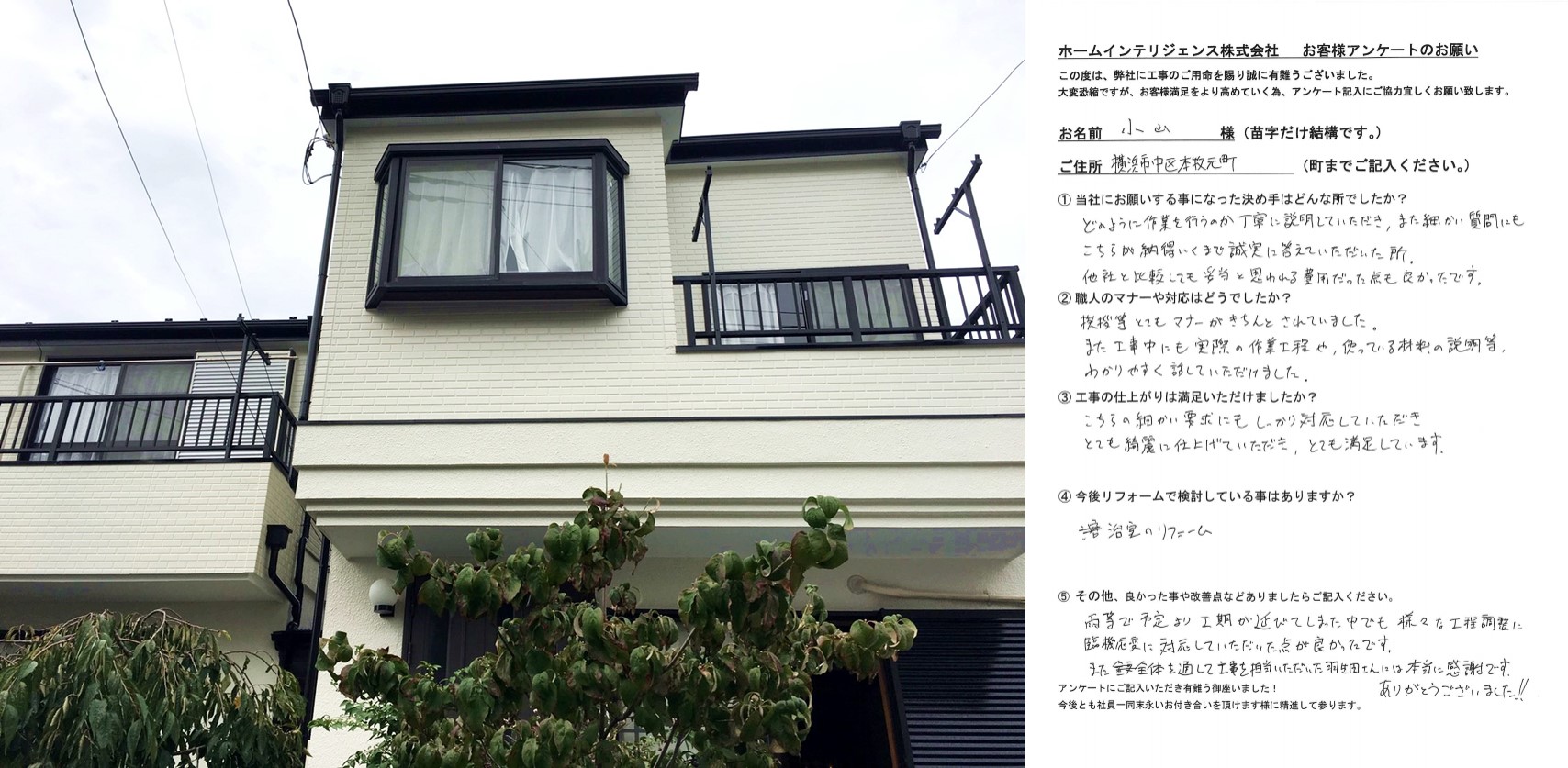 お客様の声:中区本牧元町 小山様