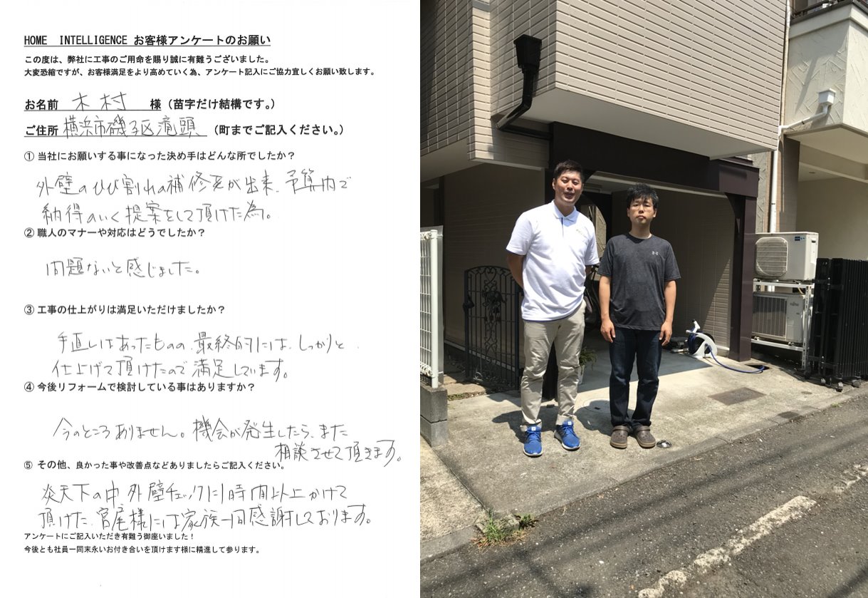 お客様の声:磯子区滝頭 木村様